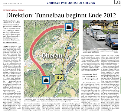 Unter der Überschrift "Das ist der Hammer" berichtet das Garmisch-Partenkirchner Tagblatt über die Reaktionen der Oberauer zum Baubeginn der Oberauer Westumfahrung, der jetzt vom Bundesverkehrsminister Alexander Dobrindt endgültig auch finanziell zugesichert wurde.